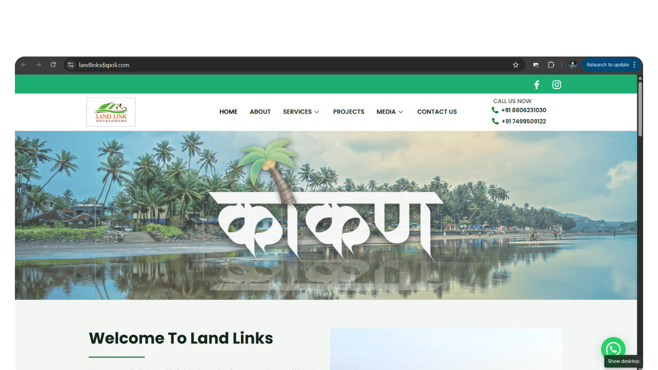The Land Links website was designed to showcase their expertise in NA land consultancy, highlighting their strategic location in Aajol and strong regional connectivity. The site emphasises their commitment to providing seamless, transparent, and location-driven land solutions for clients across Maharashtra, with clear details on accessibility and proximity to key landmarks.