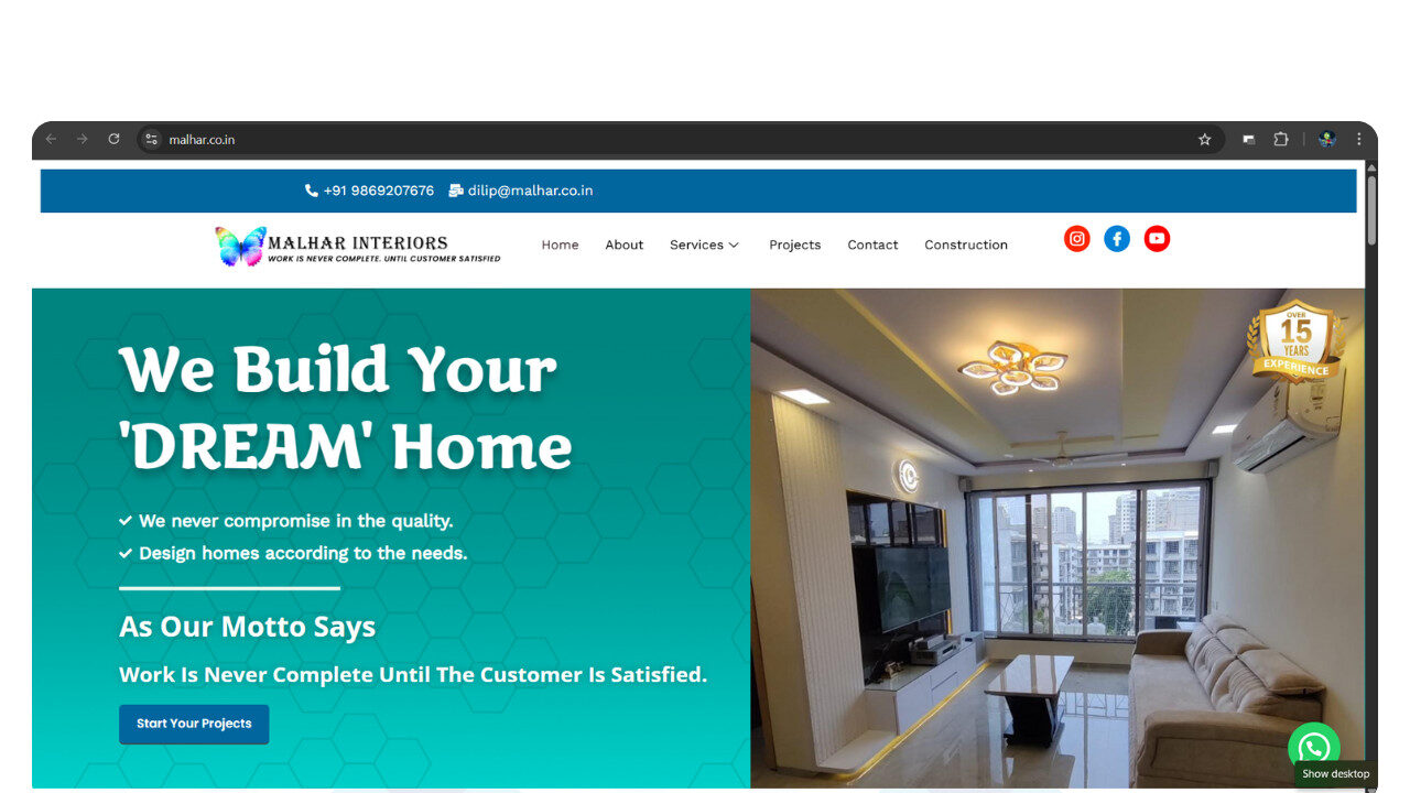 Our new website beautifully showcases our design philosophy and portfolio. The team perfectly understood our vision and created a modern, elegant site that truly represents Malhar Interior’s creativity and craftsmanship.